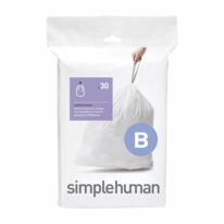 De afvalbakken van simplehuman zijn afvalbakken die speciaal op maat zijn gemaakt omdat ieder mens zo zijn eigen voorkeur heeft. Elke vuilnisbak heeft daarom zijn eigen vuilniszak zodat deze precies passen, het nooit rommelig oogt en de zak niet wegglijdt. De afvalzak is van extra dik plastic zodat scherpe voorwerpen minder kans krijgen om de zak kapot te scheuren. De handgrepen zijn ook extra sterk waardoor je de zak in een handomdraai eruit trekt en makkelijk dichtknoopt. Dit is vuilniszak Code B. Aantal: 30 stukjes.